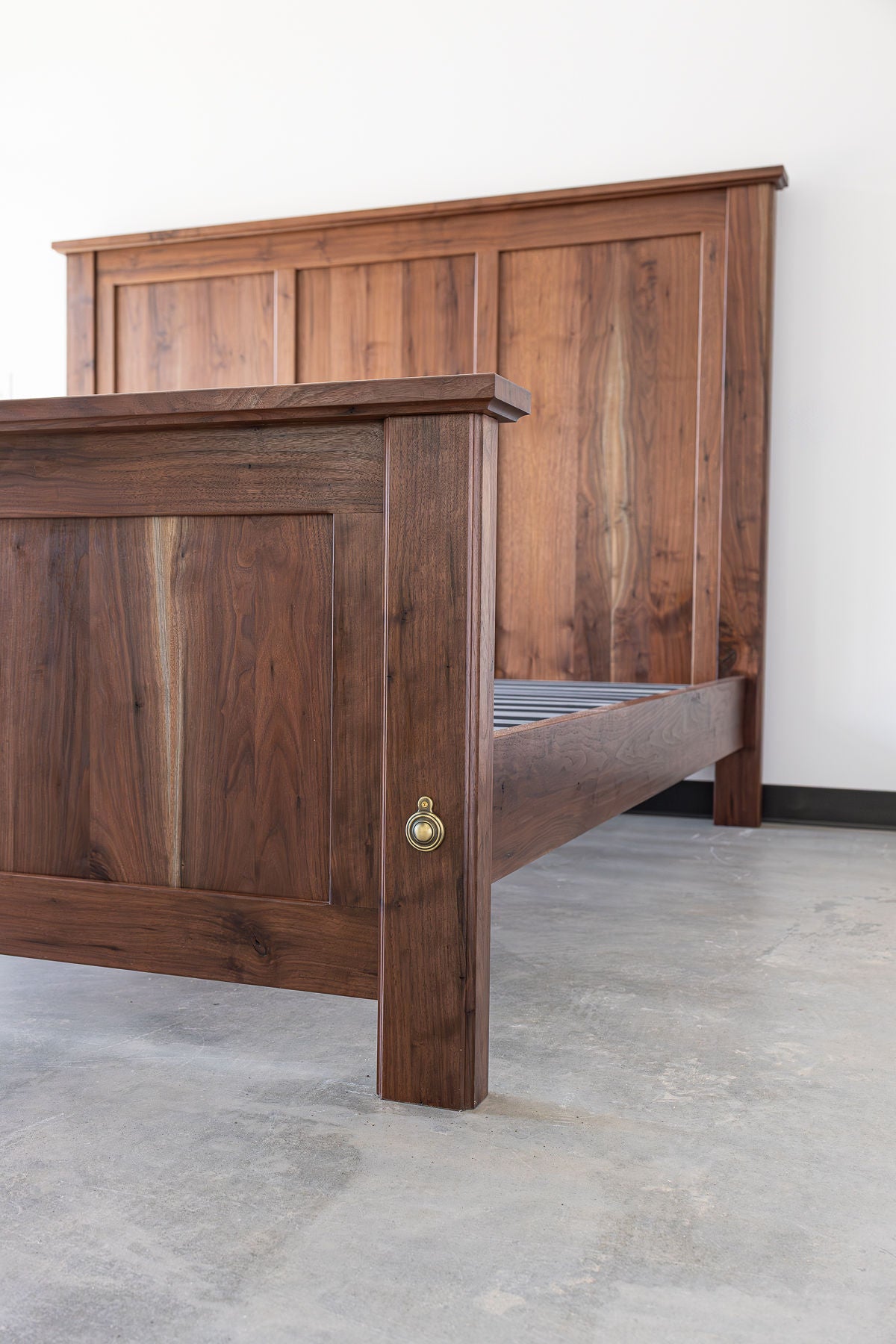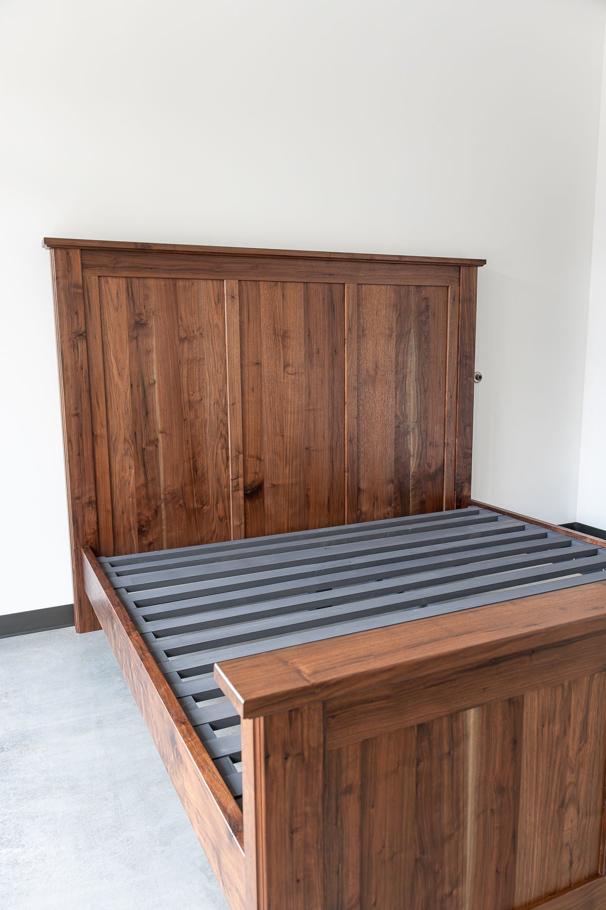 Built with old-world mortise-and-tenon joinery and supported by hardwood slats, Riverborne is made to serve for generations. A clear satin finish completes the piece, allowing the walnut’s natural beauty to come through without distraction.