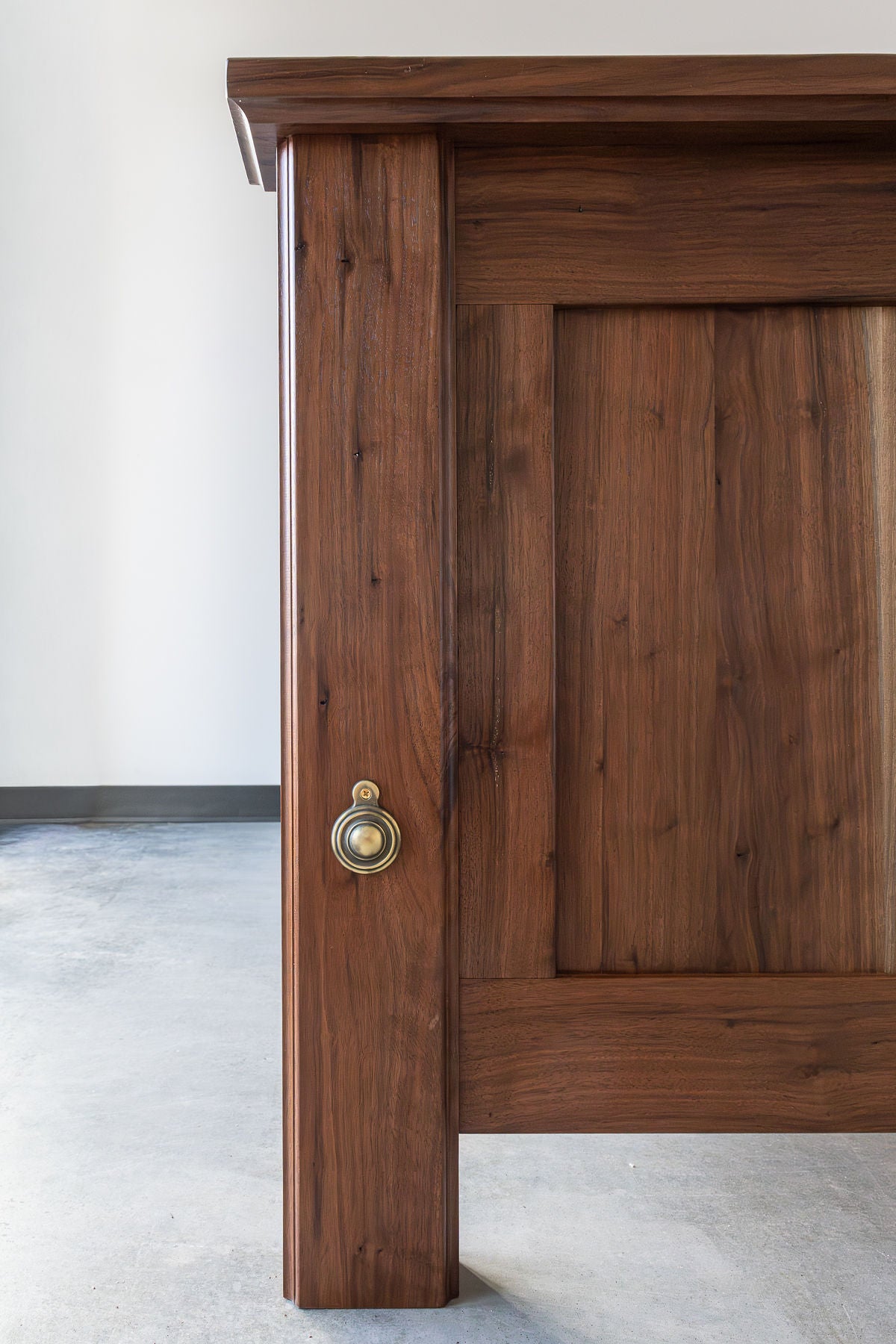 Crafted from solid black walnut, Riverborne features a classic frame-and-panel design that lets the wood speak for itself. The rich grain and deep, natural color become the focal point, giving the piece a calming and elegant presence in the room. It’s timeless by intention — a design grounded in simplicity, proportion, and the quiet confidence of fine materials.